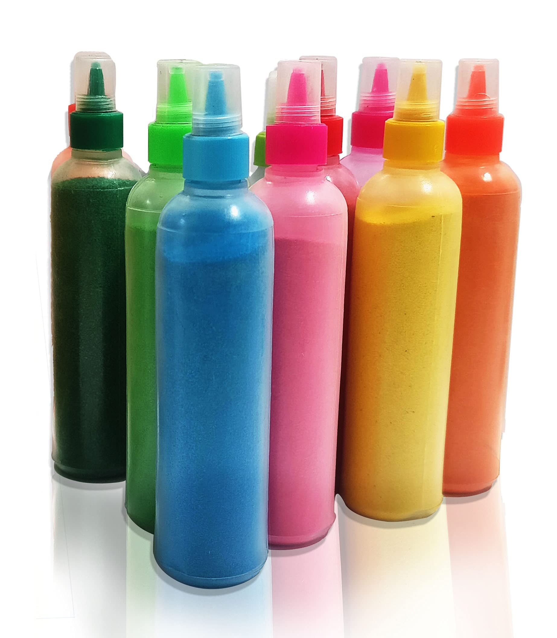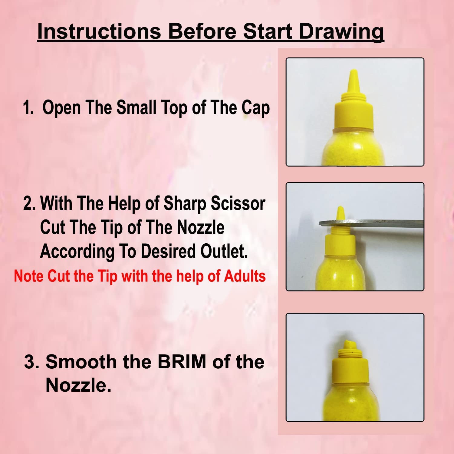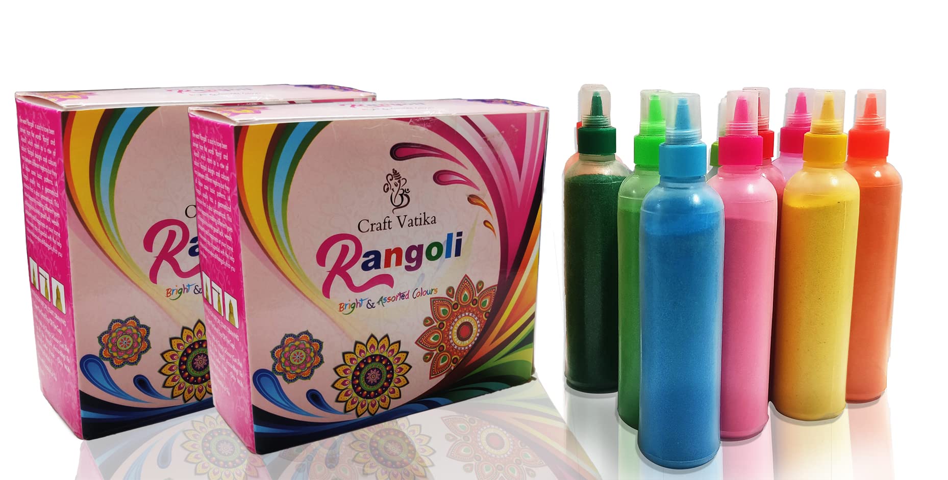 Rangaoli Package Contain: Set of 10 Multicolour Rangoli color bottles .Quantity : Approx 85 Grams each (850 Grams Total). HOW TO USE:Follow Instructions on the Box packing Please cut Front nozzle with knife. If you need larger hole please cut more than 70