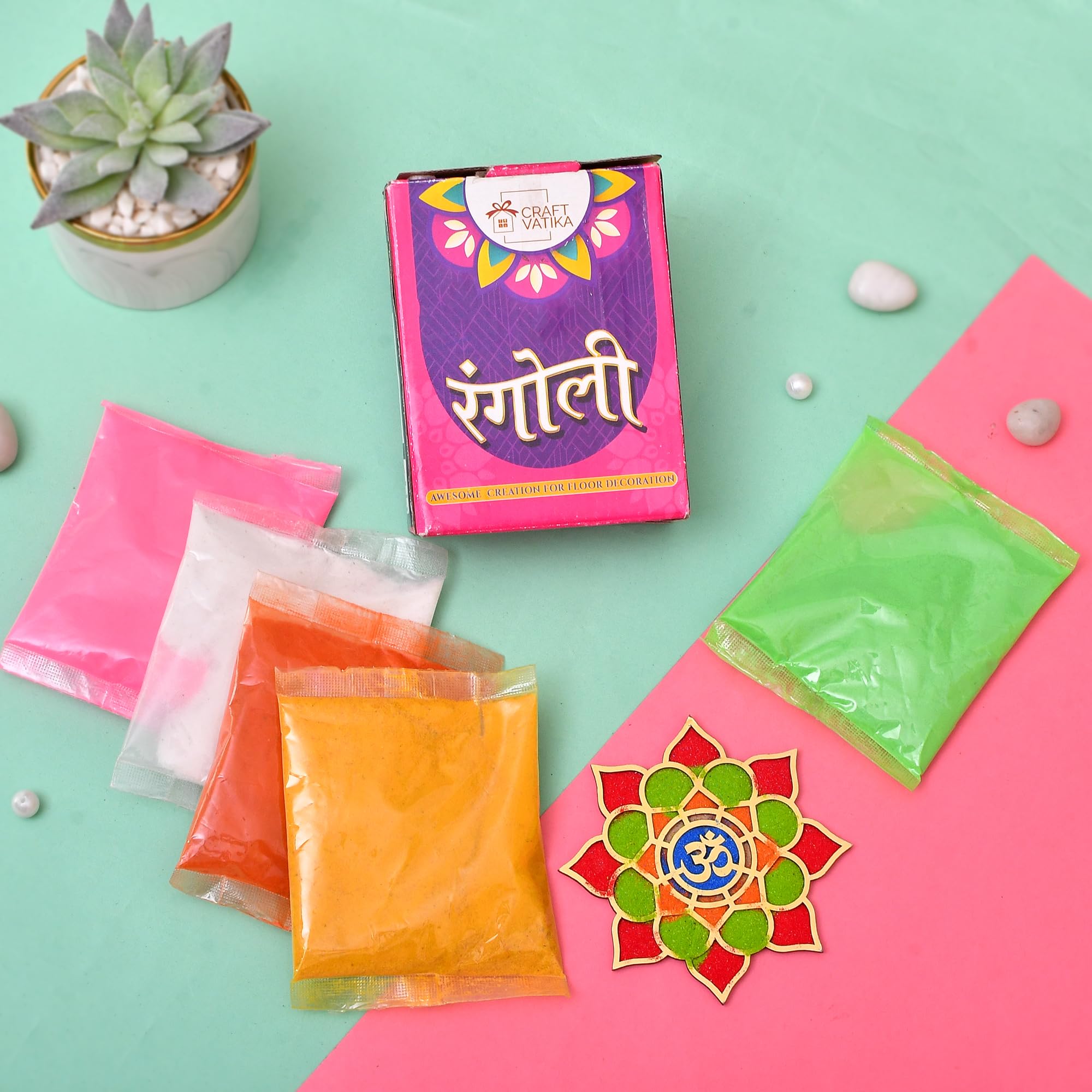 • In The Box - Set of 5 Multicolor Rangoli Color Powder with 1 Rangoli Making MDF Stencil (4.5 Inches)