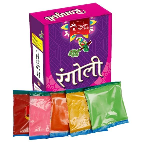 Rangaoli Package Contain: Set of 5 Multicolor Rangoli Color Powder with 1 Rangoli Making MDF Stencil (4.5 Inches). It is usually made during diwali (Deepawali) wedding onam pongal and other indian festivals. Colour is made of sawdust. These colors are eco friendly.rangoli is a native of indian culture and is used in every festive occasion to decorate one's house. These colors spread positive vibrations within the environment and make to lively and entertaining.it also signify a warm welcome for visitors. Many traditionalists also believe that drawing of rangolis on the floor near the main doorway of the house warded off evil spirits.