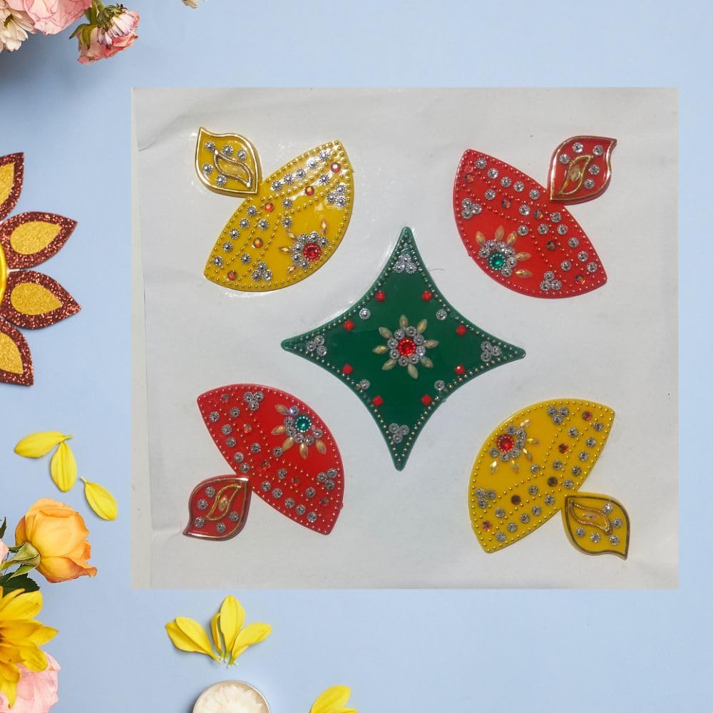 • Beautiful handmade acrylic rangoli with creative design kundan work with bright colors to decorate your home entrance beautifully. This rangoli can also be pasted on the wall to decorate your living room walls. Note: Being handmade assorted colour will b