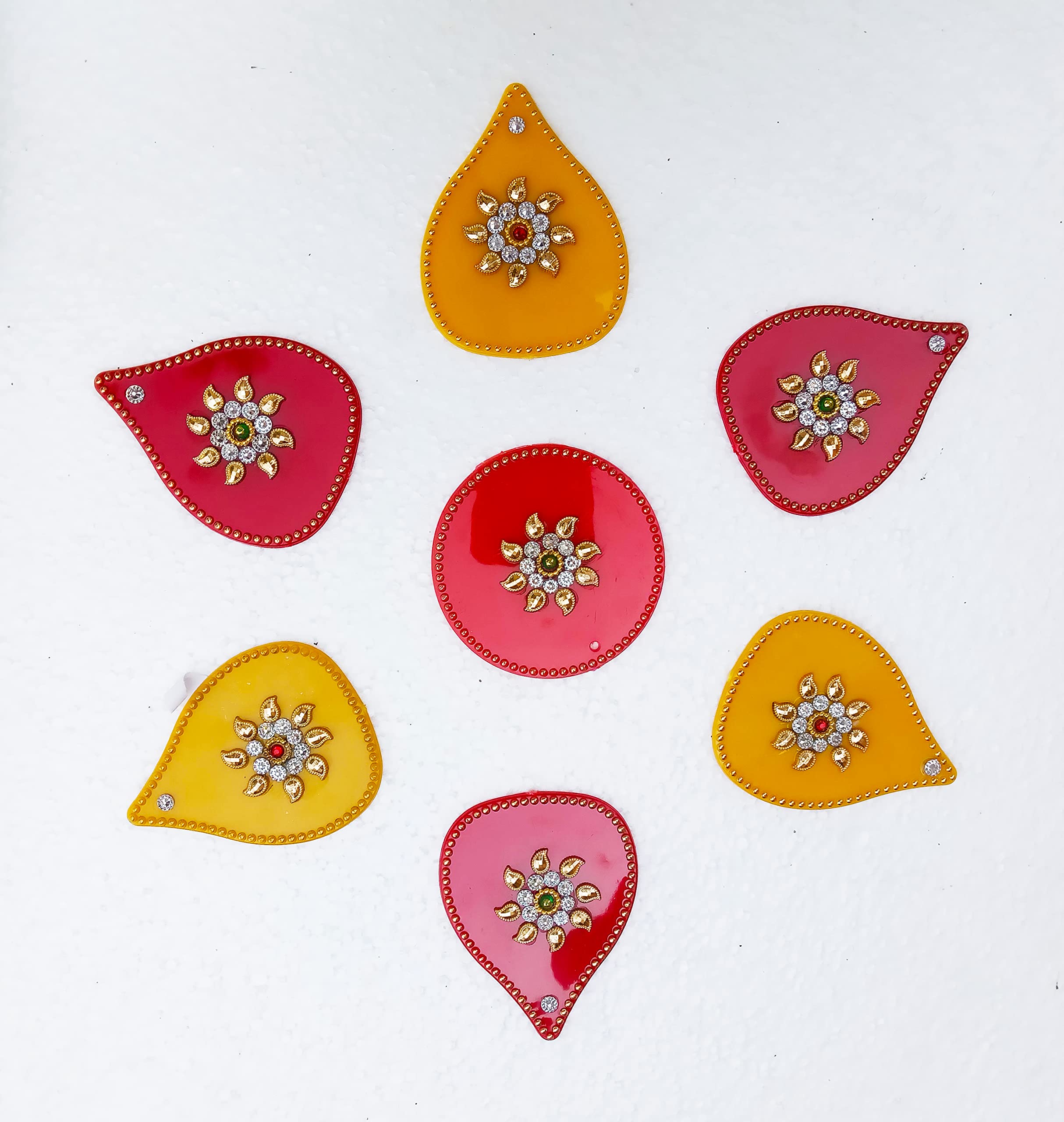 Readymade Reusable Acrylic Rangoli for Floor Decoration Pearl Kundan Pan Shape Handcrafted Rangoli Diwali Wedding Home Decoration