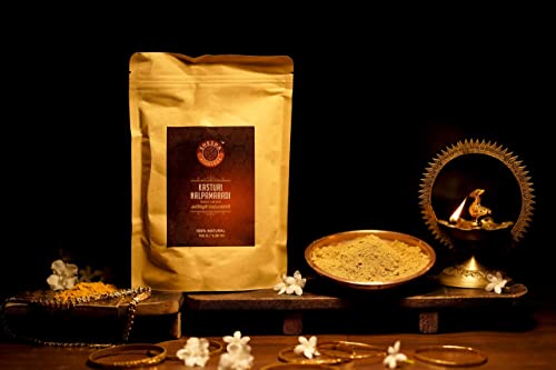• INGREDIENTS - Kasturi Manjal/Musk Turmeric Nalpamaradi Choornam Athi Ithi Arayal Peral Yellow Manjal/Haridra White turmeric Vetiver Rose petals Avarampoo Hibiscus petals Lotus petals Green gram Bengal gram Vasambu Neem leaves Korai kilangu Vaasanai patta
