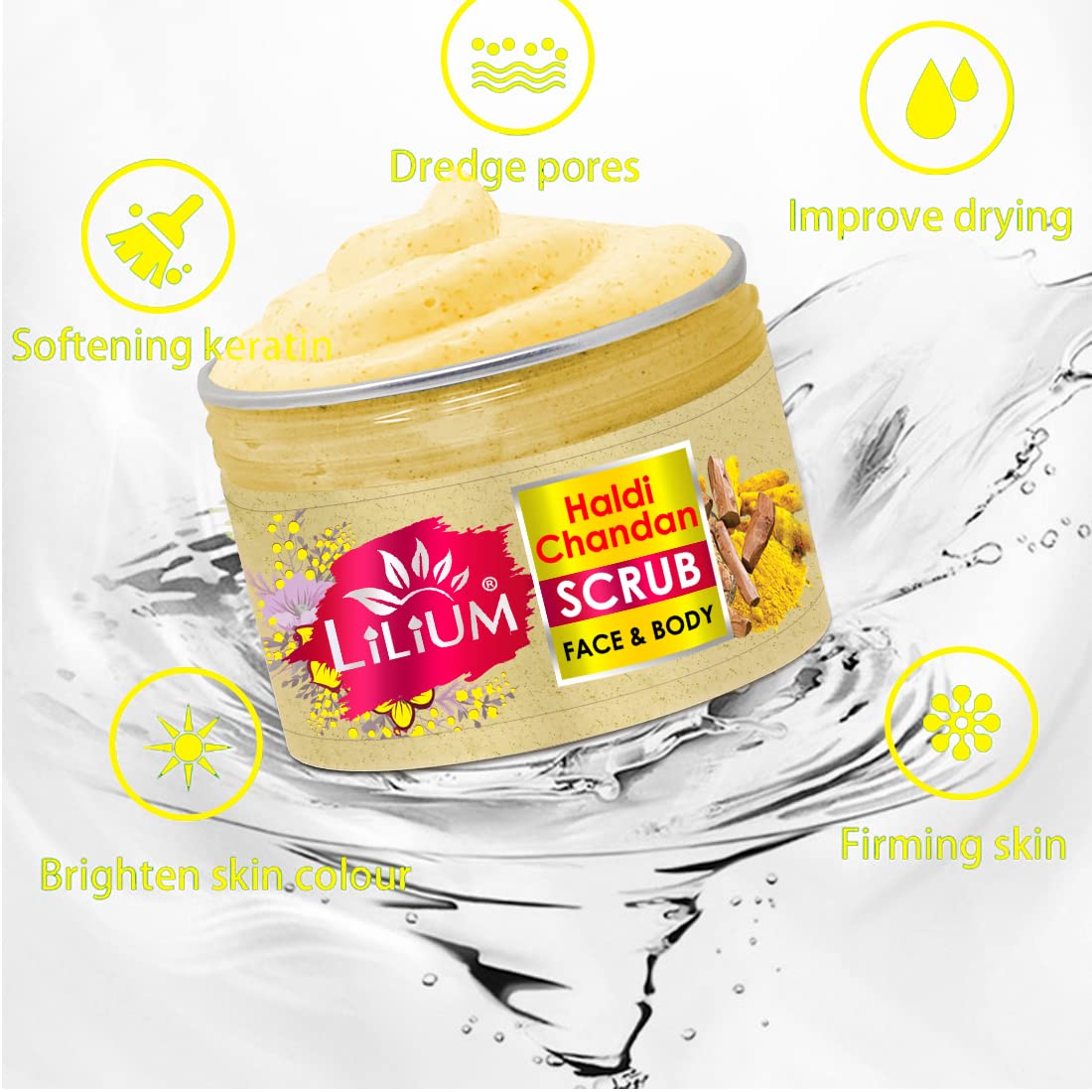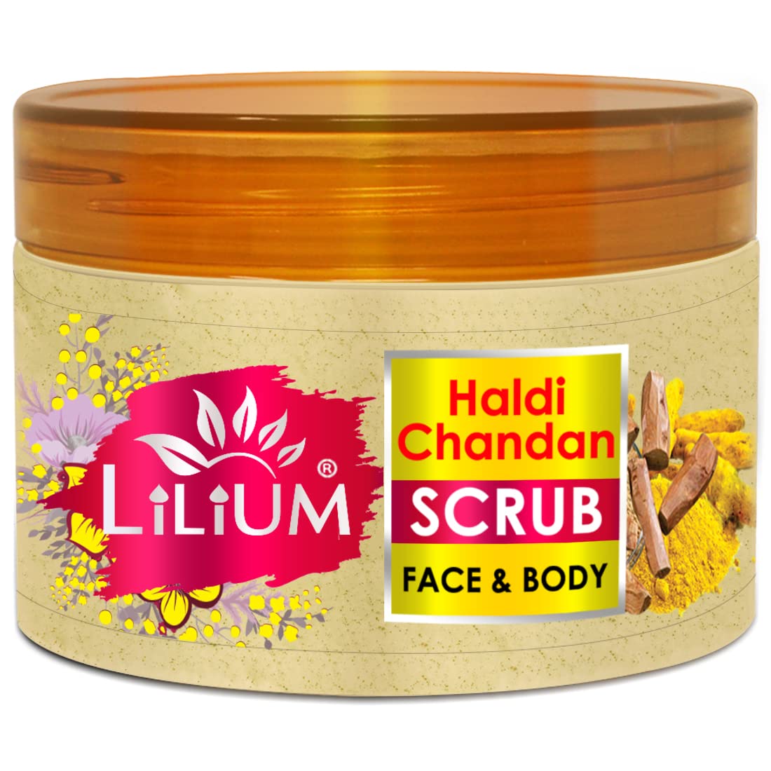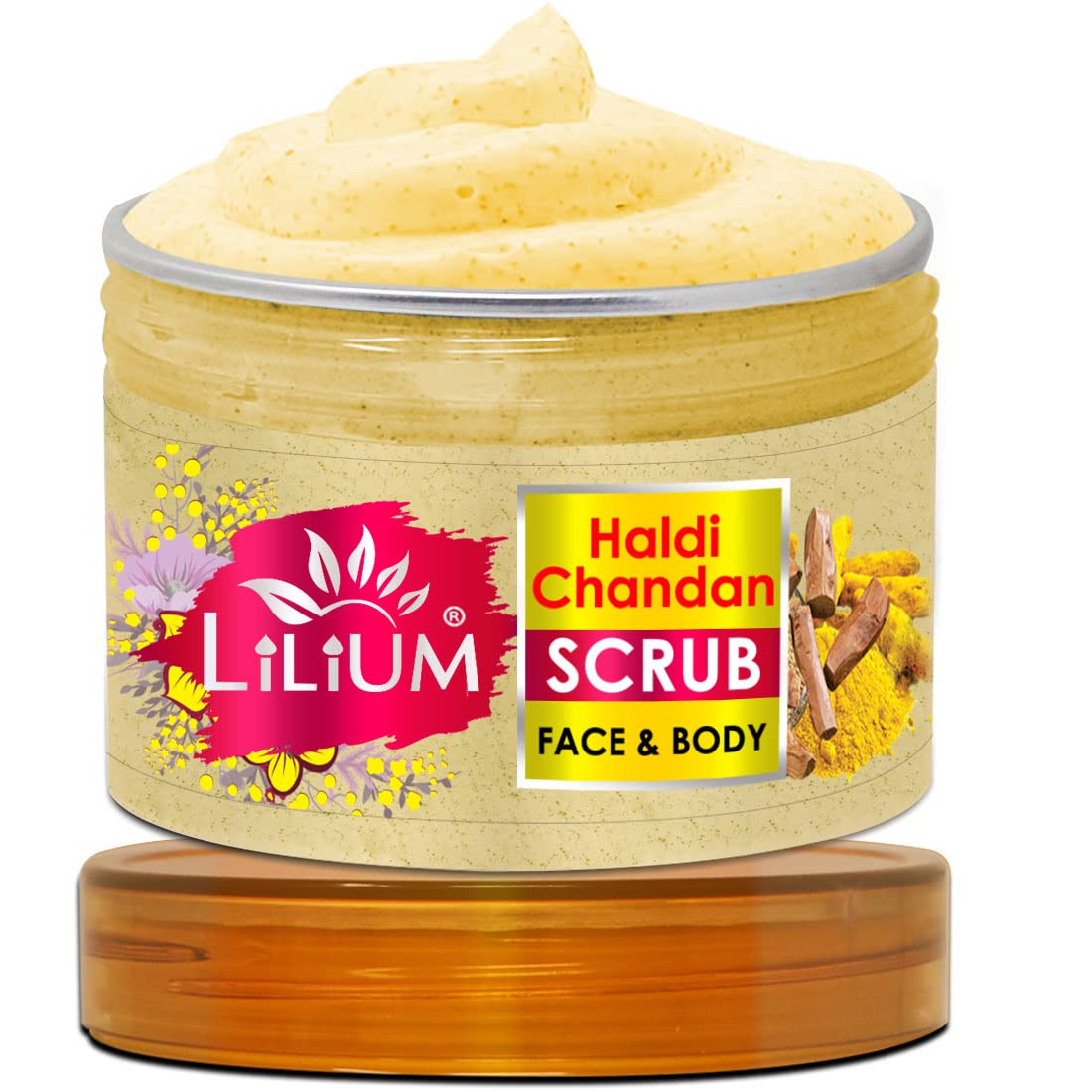 Lilium Haldi Chandan Face & Body Scrub 250g With Turmeric Oil & Sandalwood Oil To Feel Fresh Smoothness