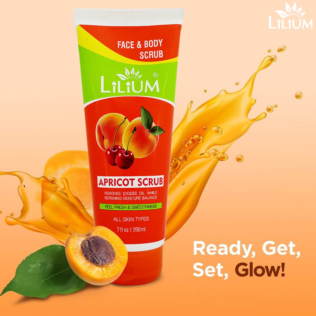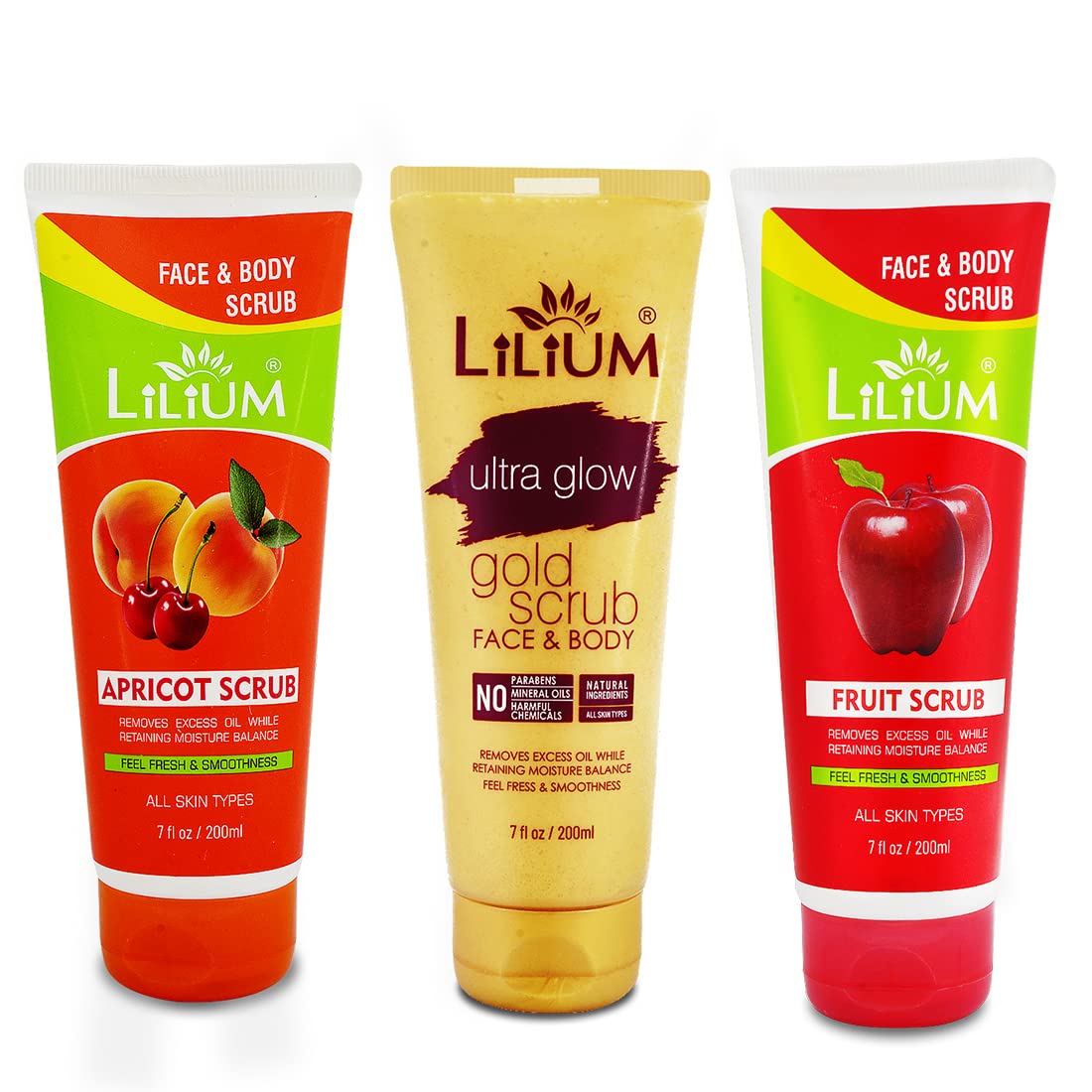Lilium Herbal Apricot Fruit & Gold Face & Body Scrub 200ml Each | For Feel Fresh & Smoothness Remove Excess Oil & Dead Skin Cells Enriched With Gold Dust Aloe Vera & Vitamin E Pack of 3