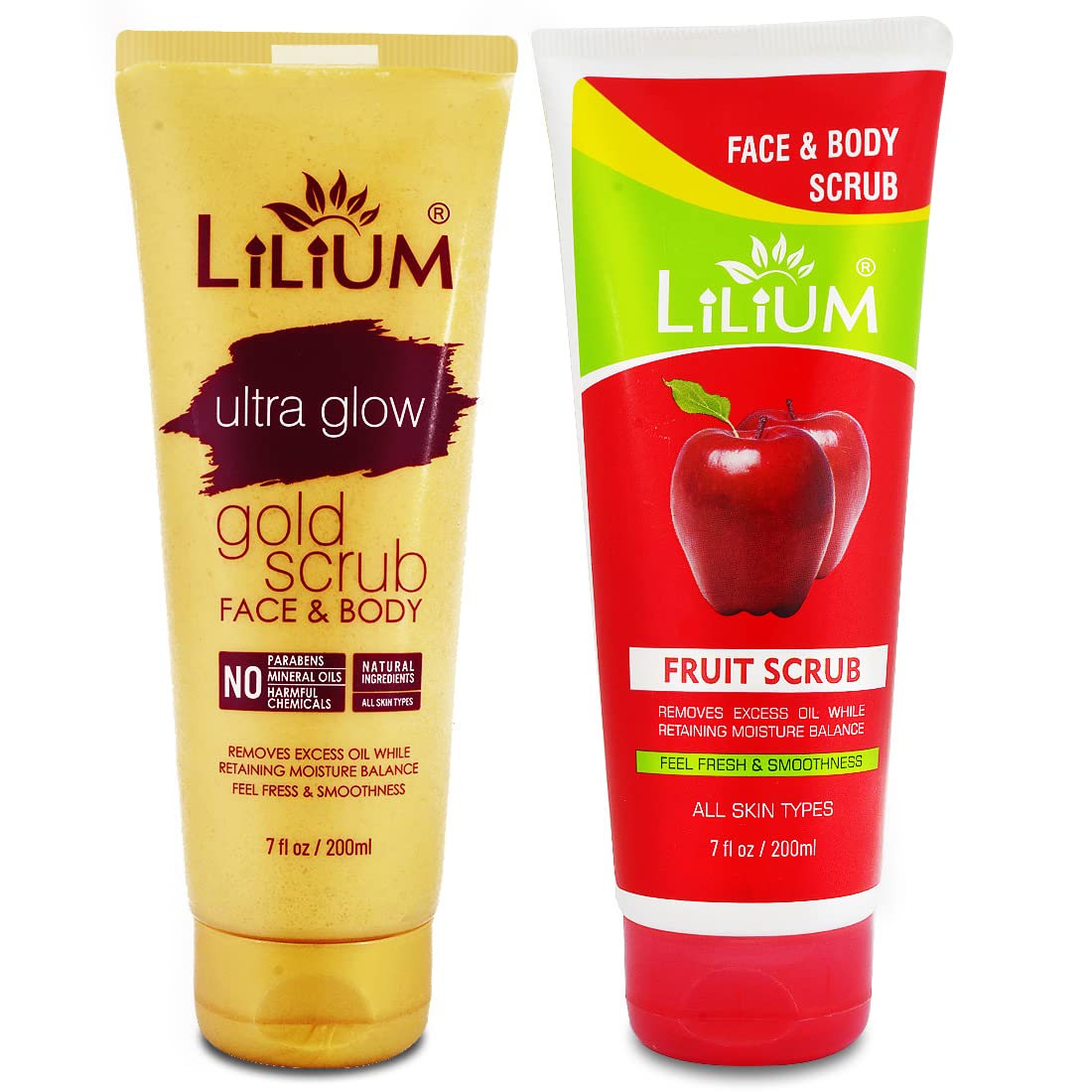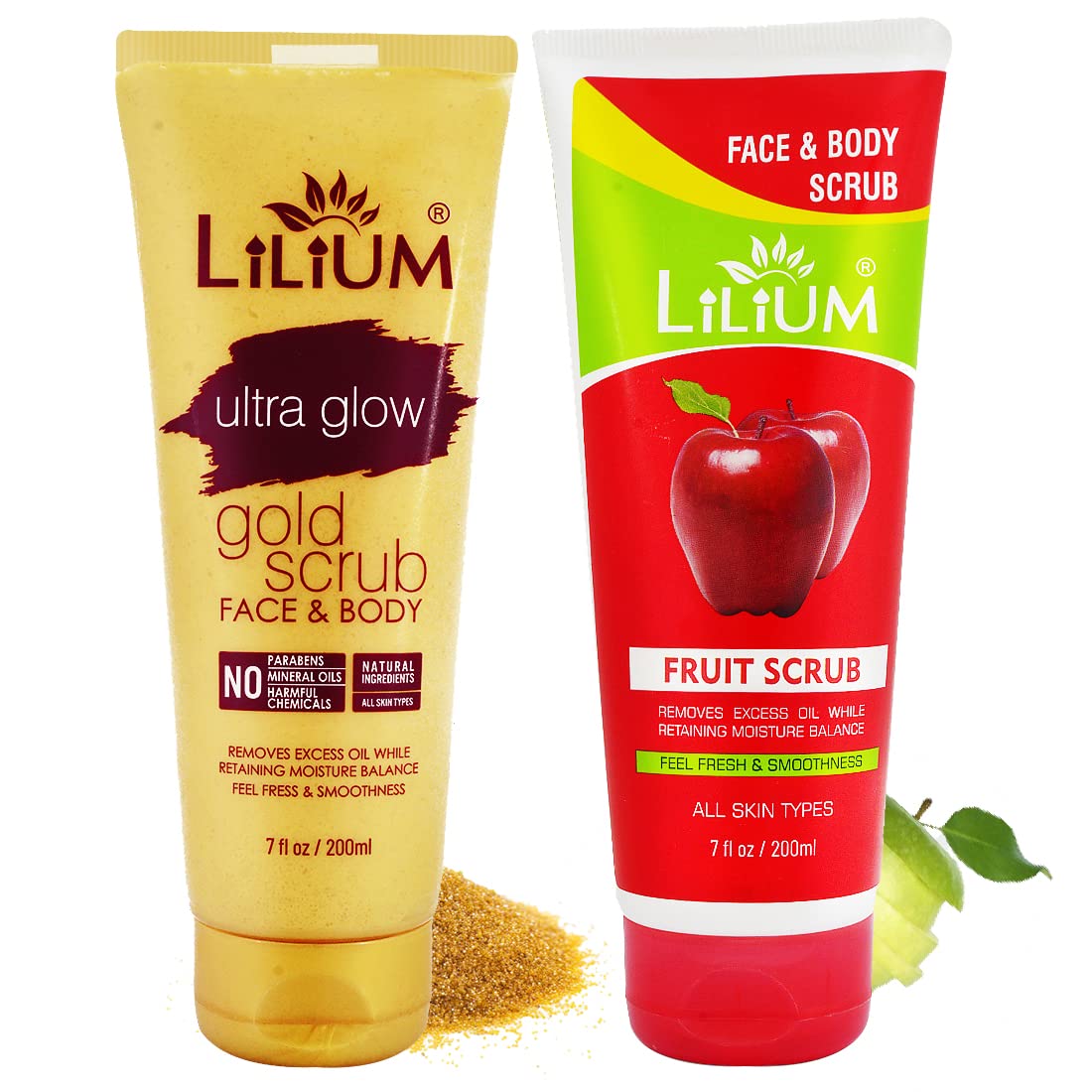 Lilium Herbal Gold & Fruit Face & Body Scrub 200ml Each | For Feel Fresh & Smoothness Remove Excess Oil & Dead Skin Cells All Skin Types Pack of 2