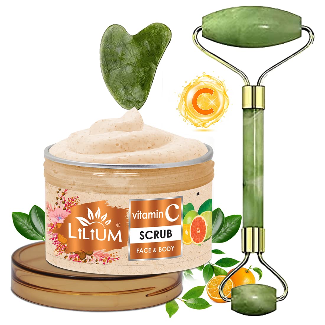 Lilium Vitamin C Face & Body Scrub 250g with Double Side Face Roller