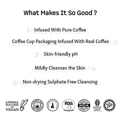 • SUPERFOOD COFFEE AT THE CORE: For us Coffee is not just a beverage it's the secret to healthy skin. Coffee has a plethora of benefits and we ensure you reap those while using our products. Coffee exfoliates and gets rid of dead skin and tan effortlessly.
