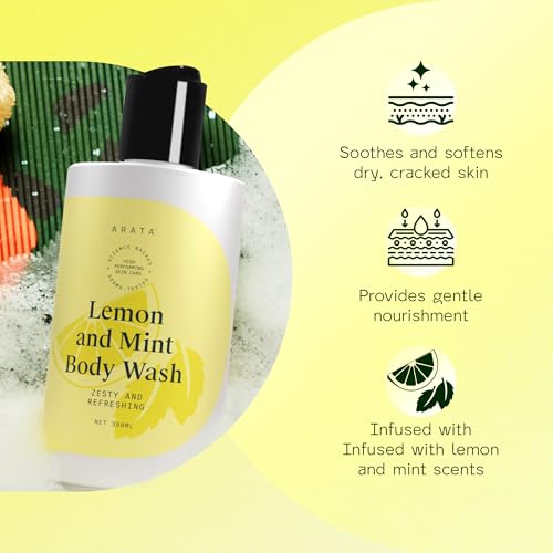 Arata Lemon and Mint Body Wash for Men & Women - 300ml | Refreshing & Zesty Fragrance | Gently Cleanses & Moisturizes | For All Skin Types