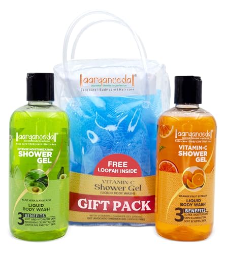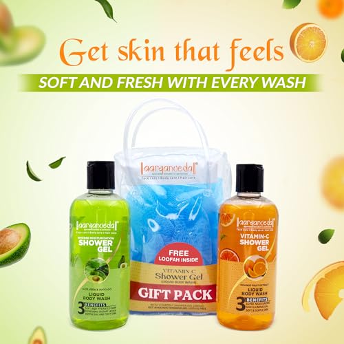 Aryanveda Vitamin C & Aloevera Avocado Shower Gel for all-skin types with Free Loofah (Pack of 2) (600 ml)