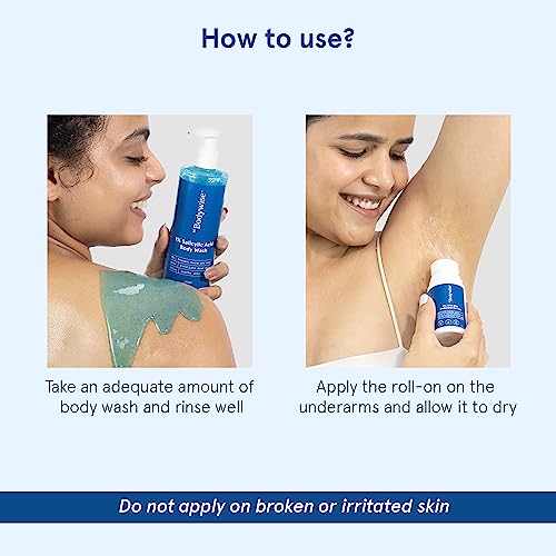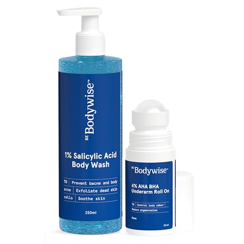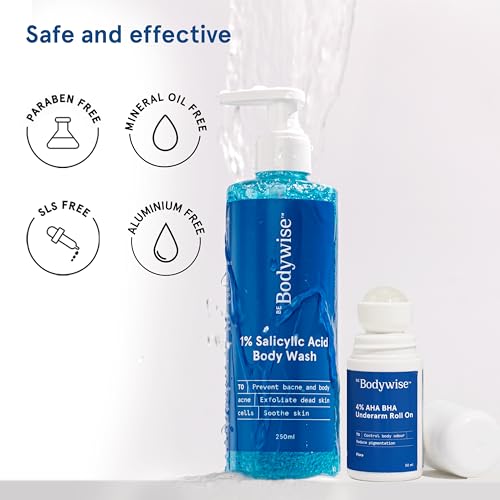 Be Bodywise 1% Salicylic Acid Body Wash (250ml) & Underarm Roll on (50ml) | 2% Lactic Acid, 1% Mandelic Acid | Prevents Body Acne, Odour & Pigmentation | Suitable for Sensitive Skin