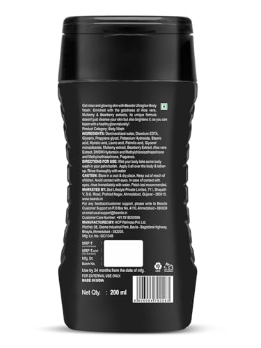 Beardo UltraGlow Body Wash for Men, 200ml | Moisturizes & Hydrates the Skin | Contains Mulberry & Bearberry Extracts for Deep Cleansing & Nourishment | Soft & Smooth Skin