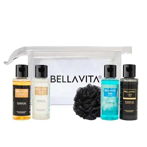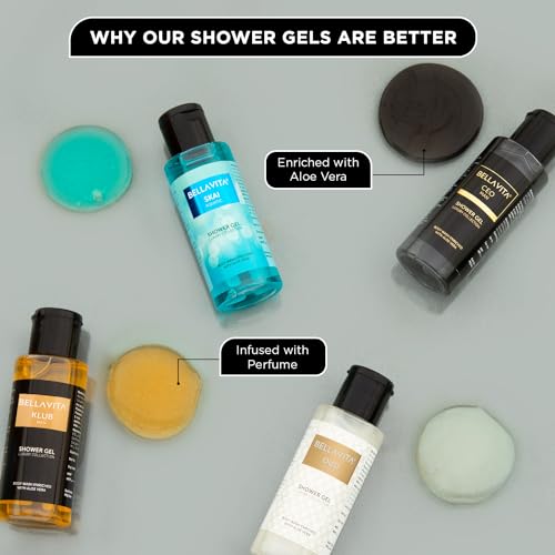 Bella Vita Luxury Men Trial Mini Kit Skai Aquatic, OUD White, KLUB & CEO Man Body Wash Refreshing Shower Gel for Smoother Skin with Aloe Vera 55ml Each