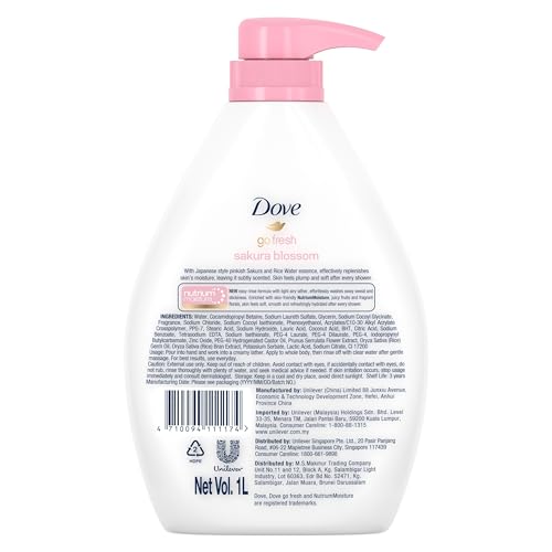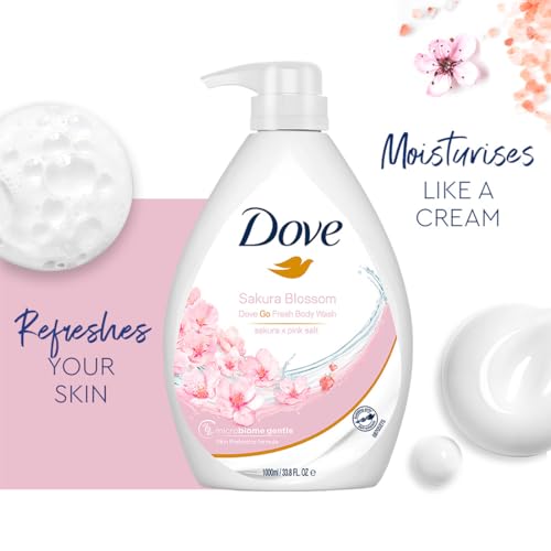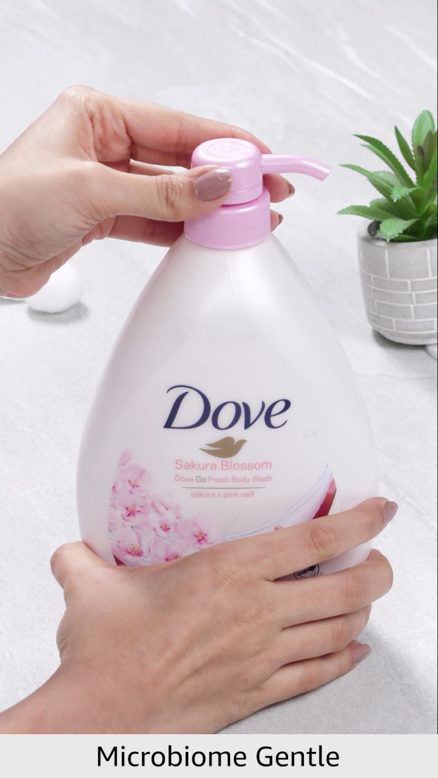 Tired of cleansing and then moisturizing daily? With Dove Sakura Blossom Go Fresh Body Wash nourish your skin while in the shower. 2-in-1 Nourishing Dove Body Wash works as shower gel and moisturizer too. It consists of the natural essence of Sakura & Himalayan Pink Salt and a unique skin prebiotics formula to give you a relaxing and pampering shower time. No more dry skin! No more extra moisturizing! Dove Body Wash has an innovative formula consisting of Microbiome Gentle a skin prebiotics formula to deeply nourish your skin and also strengthen the skinâs natural moisture barrier. Adding to it the extracts of Sakura & Himalaya Pink Salt provide the needed nutrients to the skin. While Sakura helps repair damaged skin and brighten skin tone the Himalaya Pink Salt helps restore hydration to the skin. Enriched with the goodness of nature this gentle & moisturizing body cleanser reaches deep into the skin to wash out impurities and hydrate skin from within. Dove believes a moment of self-care goes a long way and thus is always innovating to create products that help you become a better version of yourself. With rich creamy lather Dove Body Wash helps you relax while the elegant scent of Sakura calms your senses creating a truly replenishing shower experience for you. With the true motive of CARE Dove never tests its product on animals anywhere in the world and is certified PETA Cruelty-Free.