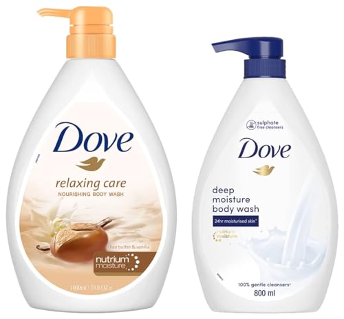 Dove Relaxing Shea Butter Body Wash 1L & Dove Deeply Nourishing Body Wash, With Moisturisers For Softer, Smoother Skin, For All Skin Type, 800 ml
