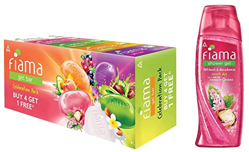 Fiama Gel Bar Celebration Pack With 5 unique Gel Bars & Skin Conditioners For Moisturized Skin 125g Soap (Buy 4 Get 1 Free)Wash away the troubles of your day with the foamy fresh and fun Fiama Gel Bars. And while you enjoy your Fiama bath let its skin-conditioners work their magic to give you soft moisturised and glowing skin. Try the Fiama Celebration pack with 5 different gel bars each with unique ingredients and natural goodness that will refresh your mind and body. So uplift your mood and get ready to make every bath a highlight of your day.Fiama Shower Gel Patchouli & Macadamia Body Wash With Skin Conditioners For Soft Glowing Skin 250ml BottleWash away the troubles of your day with the foamy fresh and fun Fiama Body Wash. And while you enjoy your Fiama bath let its skin-conditioners work their magic to give your skin a soft glow. This Patchouli and Macademia shower gel makes your day bright and shiny with its fruity floral fragrance. It is filled with natural goodness which gives you soft glowing skin and an indulgent experience. So get ready to let your bath take care of you after a rough day.