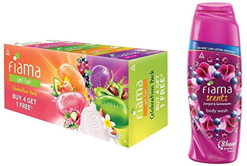 Fiama Gel Bar Celebration Pack With 5 unique Gel Bars & Skin Conditioners For Moisturized Skin 125g Soap (Buy 4 Get 1 Free)The product comes in safe package. The product will be an excellent pick for you.Fiama Scents Body Wash Juniper & Geranium Shower Gel With Skin Conditioners 8 Hour Fragrance Lock Technology Tested By Dermatologists 250ml BottleFiama Scents range is specifically crafted for long lasting freshness. Surround yourself with the fragrance of Juniper and Geranium. The long lasting perfume can be unlocked with just a touch even after 8 hours of bathing. The skin conditioners keep your skin soft and moisturised.