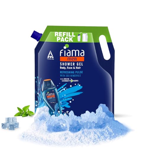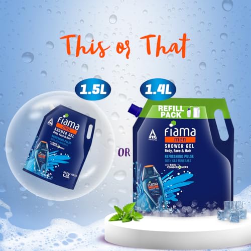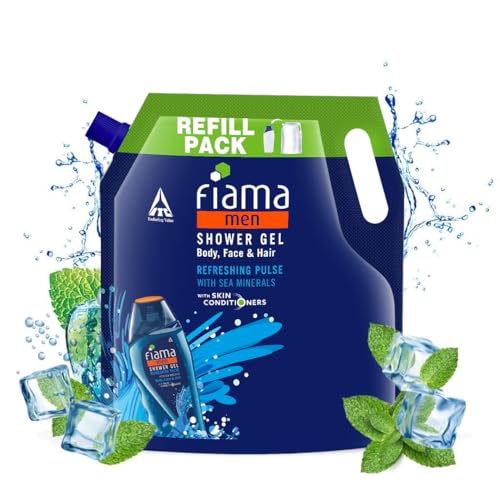 Fiama Men Body Wash Shower Gel Refreshing Pulse, 1.5L Body Wash Refill Pack for Men with Skin Conditioners & Sea Minerals for Moisturized Skin, Skin Friendly pH, For All Skin Types