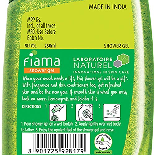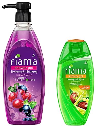 Fiama Shower Gel Blackcurrant & Bearberry Body Wash with Skin Conditioners for Radiant Glow 500 ml pumpWash away the troubles of your day with the foamy fresh and fun Fiama Body Wash. And while you enjoy your Fiama bath let its skin-conditioners work their magic to give your skin a radiant glow.This Blackcurrant and Bearberry shower gel has an indulgent fragrance that transforms a normal shower into a spa-like experience. It is filled with goodness of natural ingredients which helps your skin glow. So get ready to make every bath a highlight of your day.Fiama Shower Gel Lemongrass & Jojoba Body Wash with Skin Conditioners for Smooth Skin 250 ml bottleWash away the troubles of your day with the foamy fresh and fun Fiama Body Wash. And while you enjoy your Fiama bath let its skin-conditioners work their magic to make your skin soft and smooth. This Lemongrass and Jojoba shower gel wakes you up and pulls you out of a dull day with its zingy citrus fragrance. It is filled with natural goodness which gently exfoliates your skin and makes it smooth. So get ready for a smooth start to your day with Fiama.