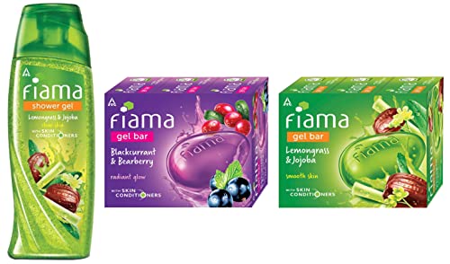 Fiama Shower Gel Lemongrass & Jojoba Body Wash with Skin Conditioners for Smooth Skin 250 ml bottleWash away the troubles of your day with the foamy fresh and fun Fiama Body Wash. And while you enjoy your Fiama bath let its skin-conditioners work their magic to make your skin soft and smooth. This Lemongrass and Jojoba shower gel wakes you up and pulls you out of a dull day with its zingy citrus fragrance. It is filled with natural goodness which gently exfoliates your skin and makes it smooth. So get ready for a smooth start to your day with Fiama.Fiama Gel Bar Blackcurrant And Bearberry for Radiant Glowing Skin With Skin Conditioners 125g soap (Pack Of 3)Wash away the troubles of your day with the foamy fresh and fun Fiama Gel Bar. And while you enjoy your Fiama bath let its skin-conditioners work their magic to give your skin a radiant glow. This Blackcurrant and Bearberry gel bar has an indulgent fragrance that transforms a normal shower into a spa-like experience. It is filled with goodness of natural ingredients which helps your skin glow. So get ready to make every bath a highlight of your day.Fiama Gel Bar Lemongrass And Jojoba for Smooth Skin With Skin Conditioners 125g (Pack Of 3)Wash away the troubles of your day with the foamy fresh and fun Fiama Gel Bar. And while you enjoy your Fiama bath let its skin-conditioners work their magic to make your skin soft and smooth. This Lemongrass and Jojoba gel bar wakes you up and pulls you out of a dull day with its zingy citrus fragrance. It is filled with natural goodness that makes your skin soft and smooth. So get ready for a smooth start to your day with Fiama.