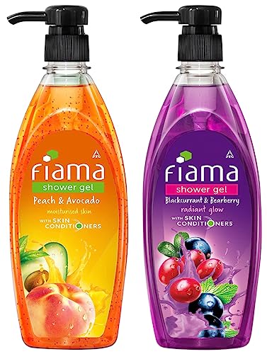 Fiama Shower Gel Peach & Avocado & Fiama Shower Gel Blackcurrant & Bearberry Body Wash With Skin Conditioners For Radiant Glow