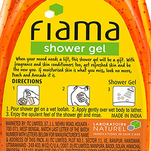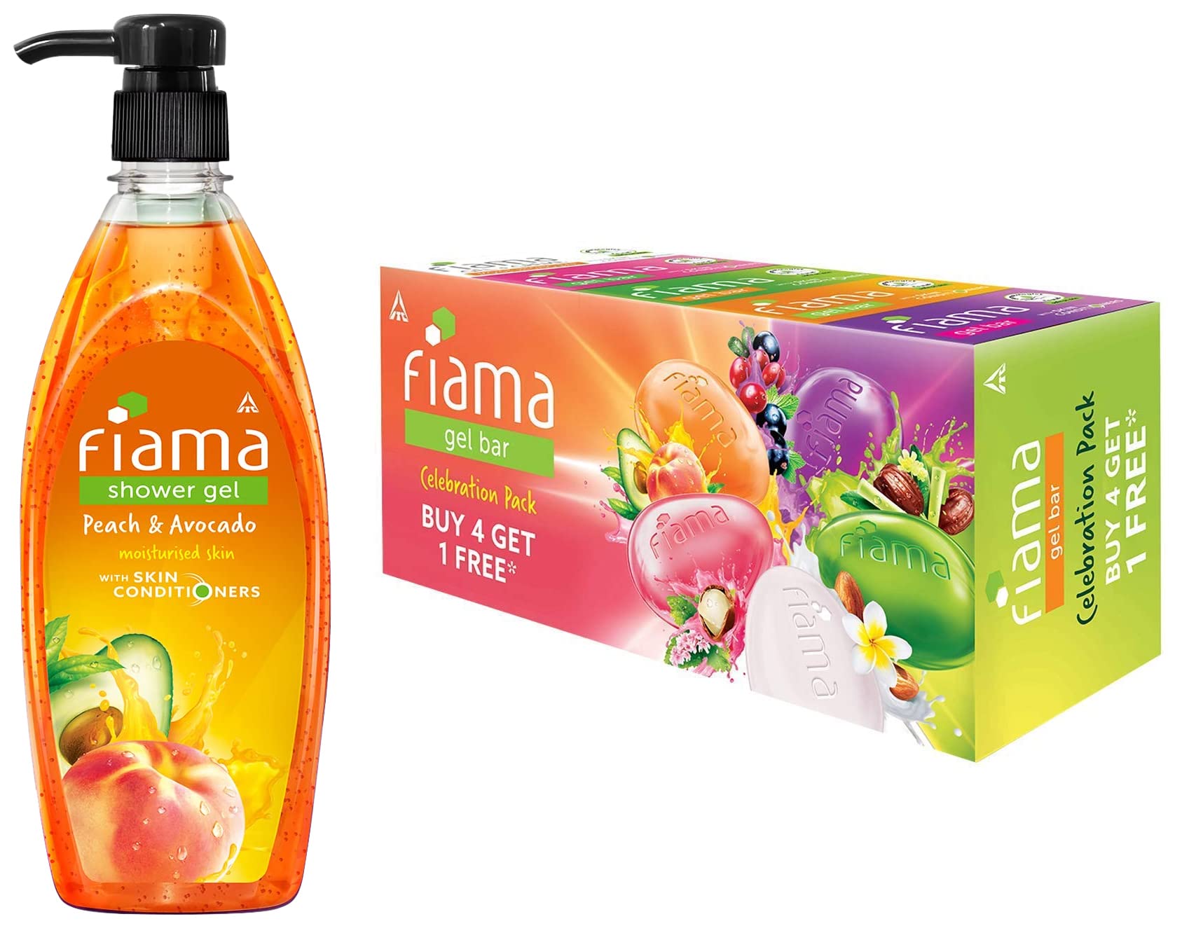 Fiama Shower Gel Peach & Avocado Body Wash with Skin Conditioners for Soft Moisturised Skin 500 ml pumpWash away the troubles of your day with the foamy fresh and fun Fiama Body Wash. And while you enjoy your Fiama bath let its skin-conditioners work their magic to make give you soft moisturised skin.This Peach and Avocado shower gel gives you the daily refreshment you need to take on the day with its fruity fragrance. It is filled with goodness of natural ingredients to give you soft moisturised skin. So get ready to wash away a hard day one bath at a time.Fiama Gel Bar Celebration Pack With 5 unique Gel Bars & Skin Conditioners For Moisturized Skin 125g Soap (Buy 4 Get 1 Free)The product comes in safe package. The product will be an excellent pick for you.
