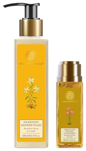 Forest essentials Silkening Shower Wash Mashobra Honey & Vanilla,200 ml & Travel Size Delicate Facial Cleanser Kashmiri Saffron & Neem| 50 ml Combo