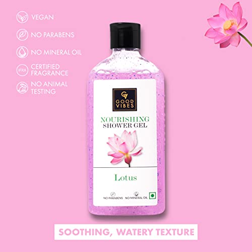 Good Vibes Lotus Nourishing Shower Gel, 300 ml | Moisturizing, Softening, Soothing, Hydrating Body Wash For All Skin Types | Vegan, No Parabens & Mineral Oil, Certified Fragrance