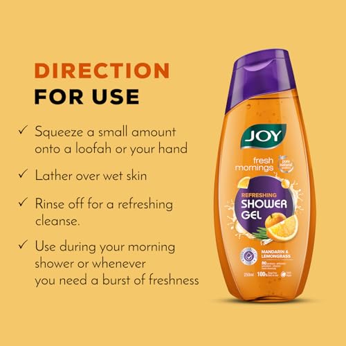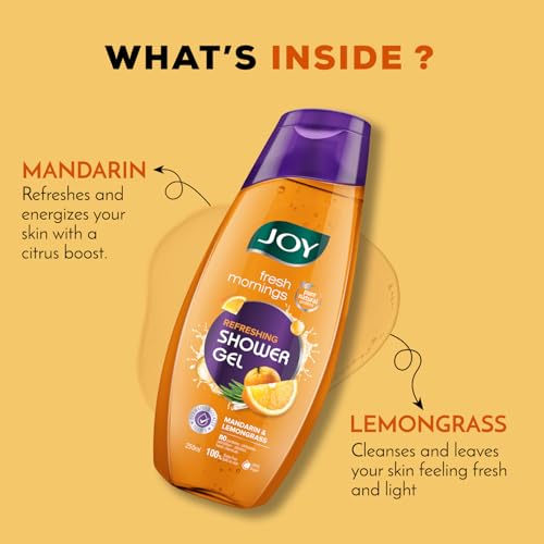 HomeBeautyBodyBath & ShowerShower Gels & Body WashJoy Mandarin & Lemongrass Shower Gel Body Wash (250 ml) | With Vitamin C for Acne Control & Lemongrass for Fighting Body Odour |100% Vegan Shower Gel For All Skin Types | Paraben Free
