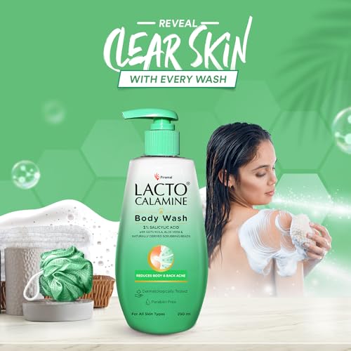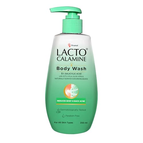 HomeBeautyBodyBath & ShowerShower Gels & Body WashLacto Calamine 1% Salicylic Acid Body Wash | 250ml | For Body Acne, Back Acne, Rough & Bumpy Skin |Cica, Aloe Vera, Turmeric & Natural Scrub Beads | Paraben Free | Body Wash Shower Gel For Men & Women