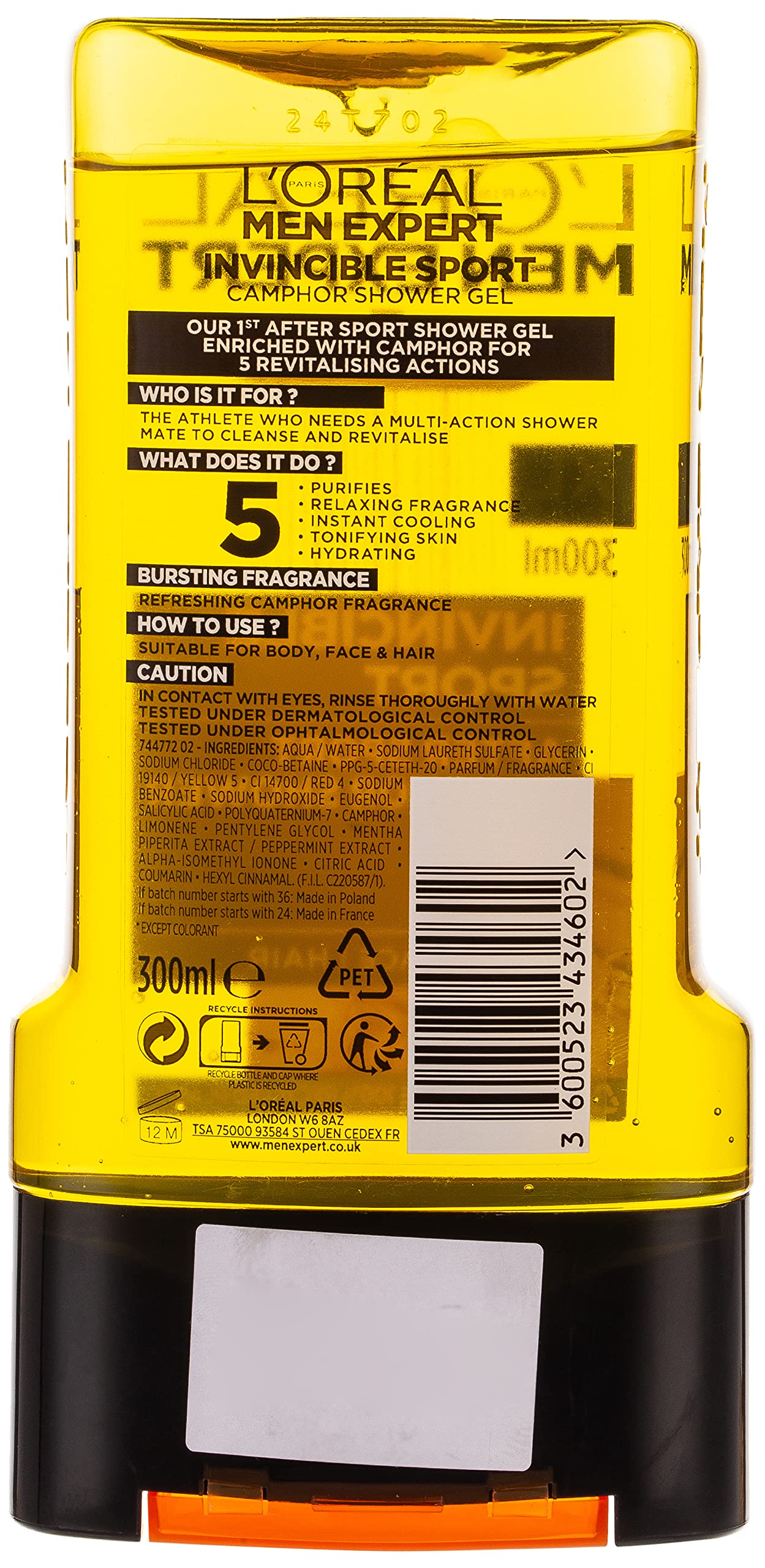 L'Oreal Paris Men's Expert Invincible Sport Shower Gel 300 Ml (Pack Of 1)⦠<1 % salicylic acid