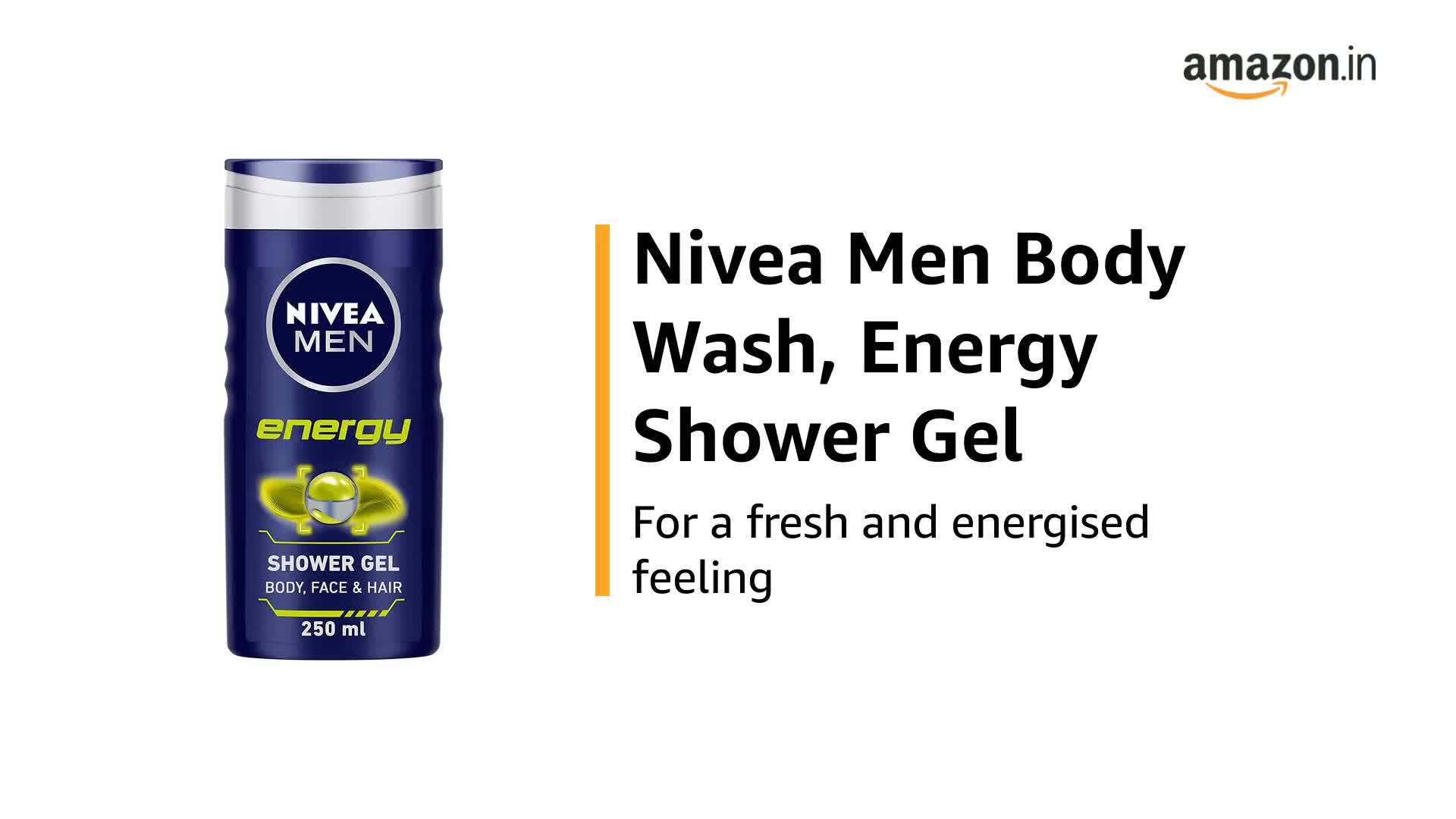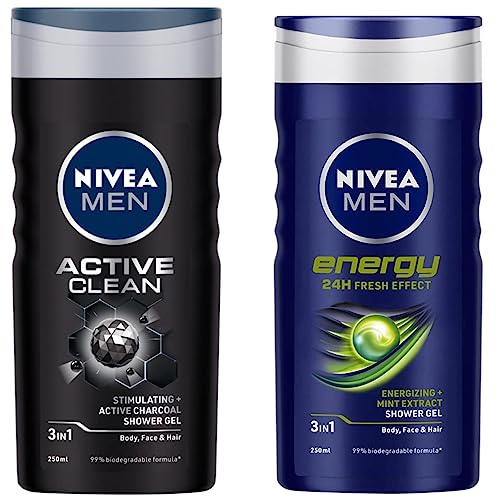 NIVEA MEN Hair Face & Body Wash Active Clean Shower Gel 250mlNivea Men Active Clean Shower gel (250ml)NIVEA MEN Hair Face & Body Wash Energy Shower Gel 250mlLet the fresh scent invigorate your senses while the hydrating 3-in-1 shower gel for Body Face and Hair with mint extract deeply cleanses to leave you feeling refreshed and energised Recharge your batteries with every shower! Result : Leaves your skin and hair feeling refreshed revitalized and deeply cleansed