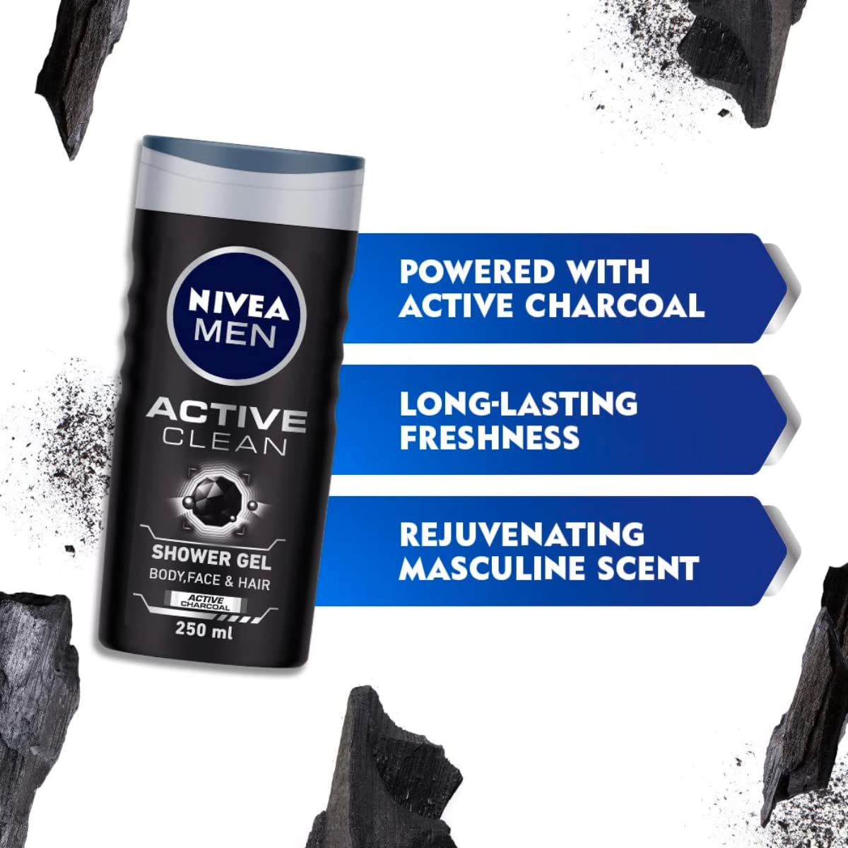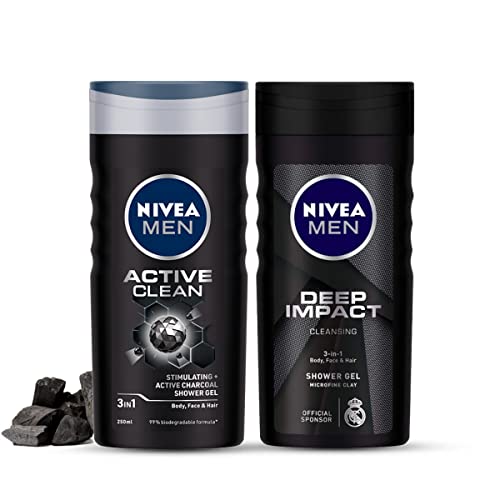 NIVEA Men Shower Gel, Deep Impact Cleansing Body Wash, Men, 250ml And NIVEA Men Shower Gel, Active Clean Body Wash, Men, 250ml
