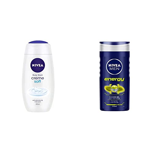 Nivea Shower Gel, Creme Soft Body Wash For Women, 250ml & Men Body Wash, Energy With Mint Extracts, Shower Gel For Body, Face & Hair, 250ml