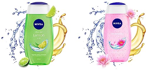 NIVEA Shower Gel, Lemon & Oil Body Wash, Women, 250ml And NIVEA Shower Gel, Water Lily & Oil Body Wash, Women, 250ml