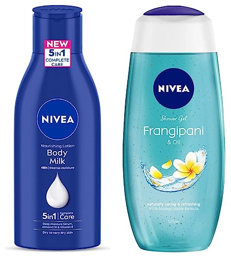 NIVEA Travel Small Pack Combo - (Body Milk 120ml & Frangipani & Oil Body Wash125 ml)
