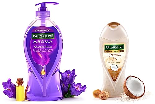 HomeBeautyBodyBath & ShowerShower Gels & Body WashPalmolive Body Wash Aroma Absolute Relax Shower Gel, 750 ml Pump & Body Wash Coconut Joy, 250ml Bottle, Creme Based Exfoliator With Real Apricot Seeds & Jojoba Butter Extracts