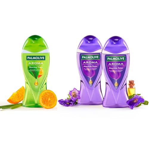 Palmolive Iris Flower & Ylang Ylang Essential Oil Aroma Absolute Relax Body Wash 250ml x 2, Orange Essential Oil & Lemongrass Aroma Morning Tonic Body Wash 250ml Combo (Pack of 3 x 250ml)