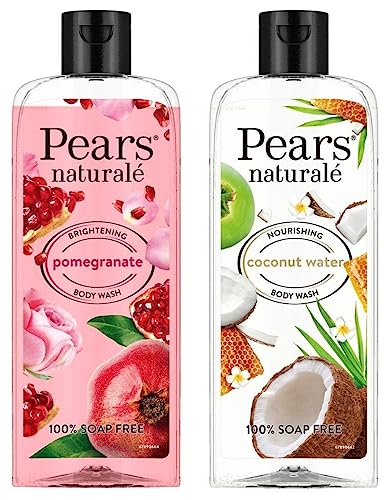 Pears Naturale Nourishing Coconut Water Bodywash 250 mlDon't you think products that have the goodness of natural ingredients in them are more suitable for you skin. Pears understands this and therefore brings to you the beautiful range of pears natural that has an exciting mix of natural ingredients. With the goodness of 100 percent natural ingredients the new pears natural range of beauty bathing bars and body washes give you naturally glowing skin. The pears natural body washes have pure glycerine that leaves your skin feeling soft and smooth. Pears natural coconut water nourishing body wash has the goodness of 100 percent natural coconut water along with honey. Its 100 percent soap free formula gently cleanses your skin for a visibly softer smoother glowing skin every time you shower. Do you know coconut water is rich in vitamins and minerals and known to hydrate and honey is known to sooth soften and nourish your skin. This gentle formula has 0 percent parabens and is mild and gentle on skin. How to use body wash. You know it. Just pour lather and rinse. Go easy on the tap. Pears natural body wash is also environmental friendly and comes in 100 percent recyclable bottles. Explore the entire pears natural range of bathing bars and body washes now available online and add them to your skin care regime.Pears Naturale Brightening Pomegranate Bodywash 250 mlDon't you think products that have the goodness of natural ingredients in them are more suitable for you skin. Pears understands this and therefore brings to you the beautiful range of pears natural that has an exciting mix of natural ingredients. With the goodness of 100 percent natural ingredients the new pears natural range of beauty bathing bars and body washes give you naturally glowing skin. The pears natural body washes have pure glycerine that leaves your skin feeling soft and smooth. Pears natural pomegranate brightening body wash has the goodness of 100 percent natural pomegranate along with rose extract. Its 100 percent soap free formula gently cleanses your skin for a visibly brighter glowing skin every time you shower. Do you know that pomegranate is packed with anti-oxidants and is known to help brighten your skin and rose extract with essential oils is known to soothe skin. This gentle formula has 0 percent parabens and is mild and gentle on skin. How to use body wash. You know it. Just pour lather and rinse. Go easy on the tap. Pears natural body wash is also environmental friendly and comes in 100 percent recyclable bottles. Explore the entire pears natural range of bathing bars and body washes now available online and add them to your skin care regime.