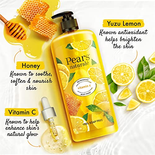 Wouldnât you want to use/try products with goodness of natural ingredients for your skin? Pears now brings to you New Pears Naturale Refreshing Vitamin C Body Wash with the goodness of 100% natural Ingredients. Its is infused with Yuzu lemon extract honey and Vitamin C. With Natural Yuzu Lemon extract a known super food it leaves your skin feeling refreshed and radiant. Honey known to soothe soften and nourish your skin and Vitamin C a potent antioxidant known to help enhance skin's glow. Pears Vitamin C bodywash leaves your skin feeling refreshed and glowing after every wash. Its fresh citrus scent helps revitalize your senses leaving you feeling clean and invigorated. Infused with 98% Pure Glycerin known to help hold your skins naturale moisture Pears Naturale bodywash gently cleanses your skin without leaving your skin feeling dry. This bodywash is Designed with plant-based cleanser this pH balanced formula with 0% soap and 0% parabens is dermatologically tested. It is suitable for all skin types from normal to dry skin and can be used by both men and women. Pears body washes are packed in recyclable bottles our initiative towards being environmentally friendly. You should also explore our Range of Pears Naturale bathing Bars in Brightening Pomegranate & Detoxifying Aloe Varieties for soft glowing skin.