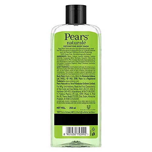 Pears Pure & Gentle Shower Gel 250 ml with (Free Loofah)Did you know that glycerine is one of the well-known ingredients that helps preserve the natural moisture of your skin? Pears Pure & Gentle Body Wash with 98% pure glycerine is known to hydrate and moisturise for a glowing skin. Pears Pure & Gentle Body Wash also has natural oils and gentle cleansers that leaves your skin feeling soft smooth and moisturised. Itâs formula is 100% soap free yet it cleanses your skin thoroughly leaving it feeling refreshed. It has a pleasant soothing and refreshing fragrance too. Pears Body Wash can also be used as a handwash it removes 99.9% germs (as per lab test done in 2020 on select germs) Try Pears Pure & Gentle Body Wash 1) With 98% pure glycerine 2) 100% Soap Free 3) Gentle enough for daily use even on delicate skin 4) Dermatologically Tested Pears Pure & Gentle Body Wash is easy to use: 1) Squeeze a small amount of Pears Body Wash on a wet loofah. 2) Work into rich bubbly lather. 3) Apply thoroughly and gently over wet skin and then rinse off and Pat dry. Experience skin that feels soft smooth and glowing.Pears Naturale Detoxifying Aloevera Bodywash 250 mlDon't you think products that have the goodness of natural ingredients in them are more suitable for you skin. Pears understands this and therefore brings to you the beautiful range of pears natural that has an exciting mix of natural ingredients. With the goodness of 100 percent natural ingredients the new pears natural range of beauty bathing bars and body washes give you naturally glowing skin. The pears natural body washes have pure glycerine leaves your skin feeling soft and smooth. Natural aloe vera detoxifying body wash has the goodness of 100 percent natural aloe vera along with olive oil. Its 100 percent soap free formula gently cleanses your skin for a visibly refreshed glowing skin every time you shower. Do you know aloe vera is known to purify and soften your skin leaving it clear and refreshed and olive oil packed with anti oxidants is known to protect skin. This gentle formula has 0 percent parabens and is mild and gentle on skin. How to use body wash. You know it. Just pour lather and rinse. Go easy on the tap. Pears natural body wash is also environmental friendly and comes in 100 percent recyclable bottles. Explore the entire pears natural range of bathing bars and body washes now available online and add them to your skin care regime.