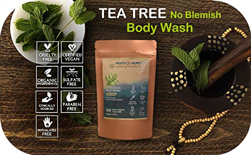 ROOTS AND HERBS Tea Tree Body Wash - Non foaming Shower Powder for Men & Women - Natural Antibacterial Cleanser for Acne treatment Body Odor