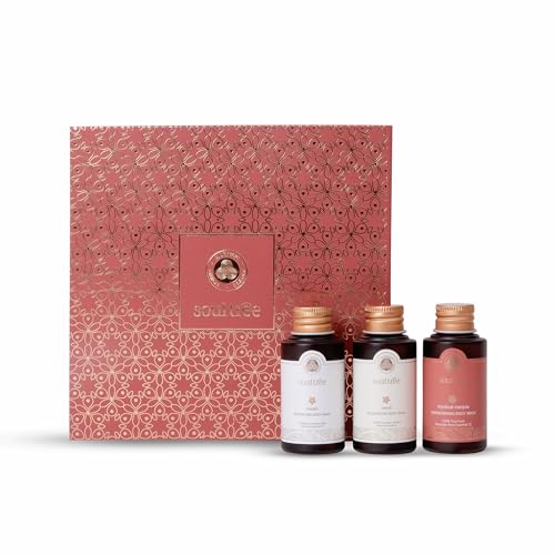 Embark on an enchanting journey with the Pushp Vanam-Floral Essentials Shower Gel Collection Gift Box. Indulge in the allure of three mystical fragrances that weave a tapestry of opulence and Ayurvedic essence. Malatii enchants with its whispers of serene nights revealing the delicate charisma of Jasmine that illuminates the darkness. Mystical Manjula envelops you in pure grace a poetic dance capturing the untouched beauty of roses. Nerolii's enchanting aura dances with vibrant citrus blossoms uplifting your spirit and evoking awe-inspiring beauty. Unite wellness luxury and the elegance of nature in a timeless symphony. Immerse yourself in Ayurvedic opulence with our exquisite Floral Essentials Shower Gel Collection.