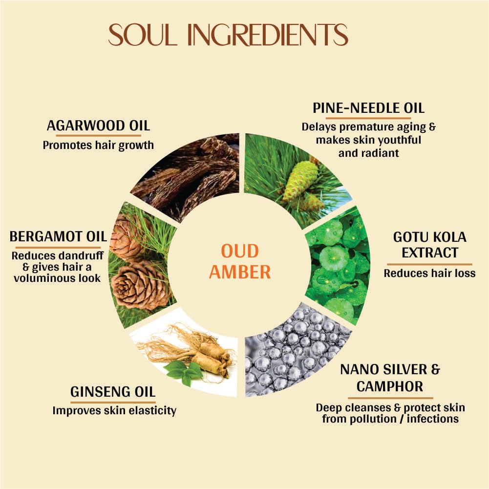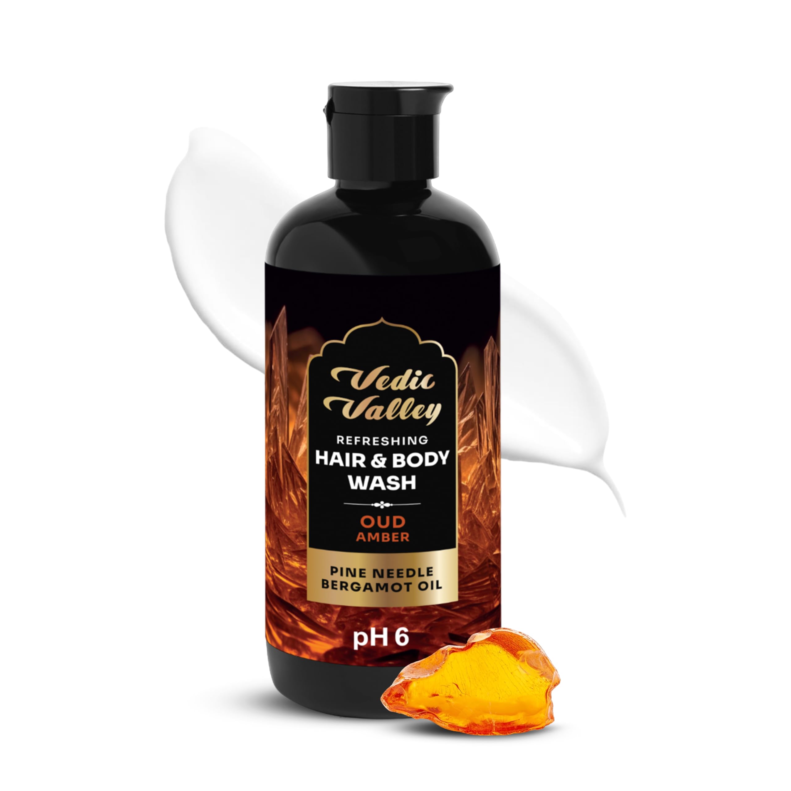 VEDIC VALLEY 100% Natural & Vegan Oud Amber Hair & Body Wash for Dry skin SLS & Paraben Free Shower Gel Treats Body Acne Nourished Skin & Shiny Hair Long Lasting Fragrance for Men & Women- 300 ml