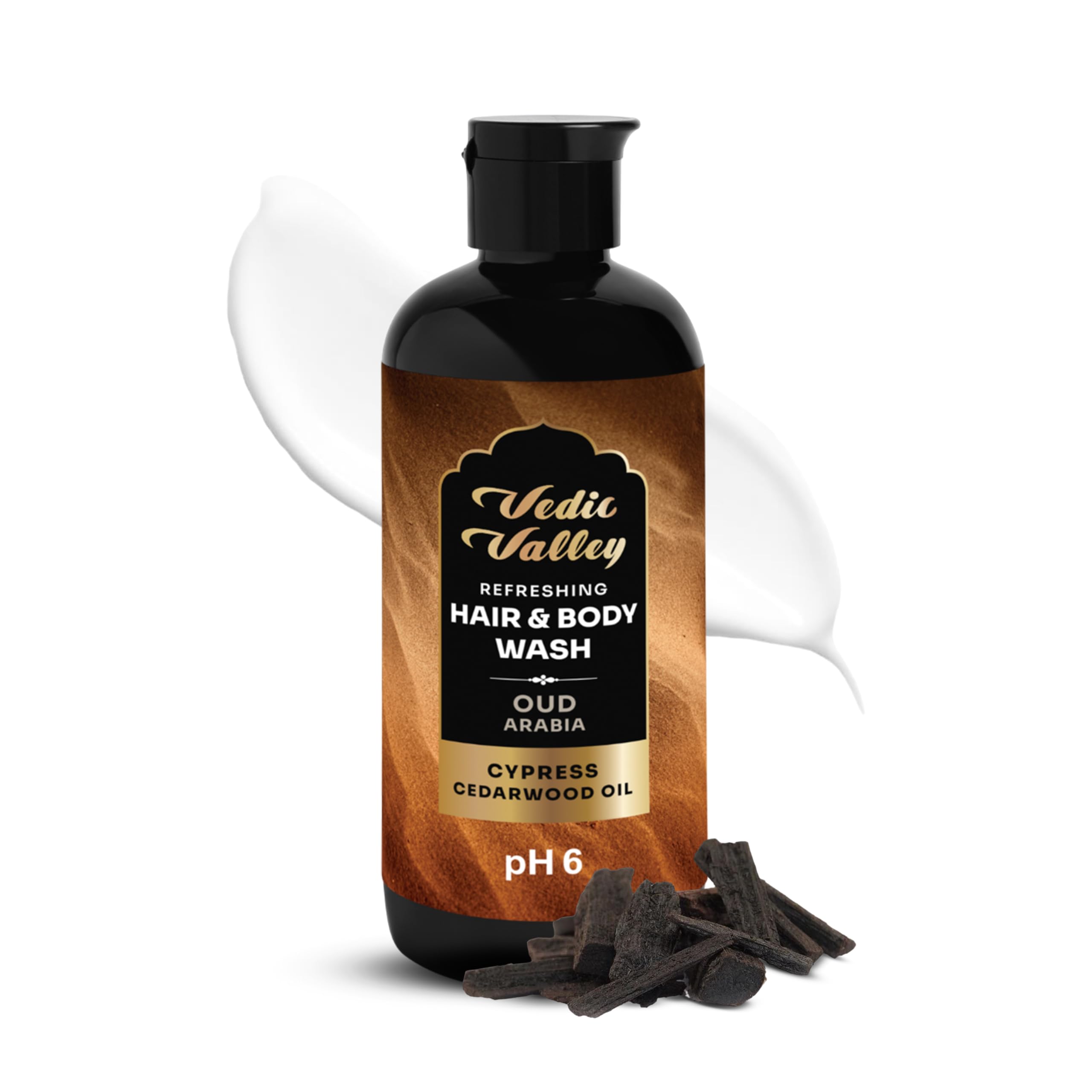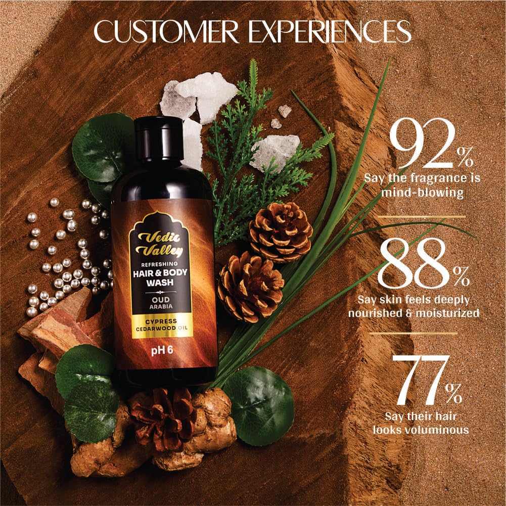 VEDIC VALLEY Oud Arabia Vegan Sulphate & Paraben Free Hair & Body Wash for Men & Women - 300 ml with Organic Actives Brightens Skin Deeply Nourishes & Moisturizes Reduces Hair Fall & Loss