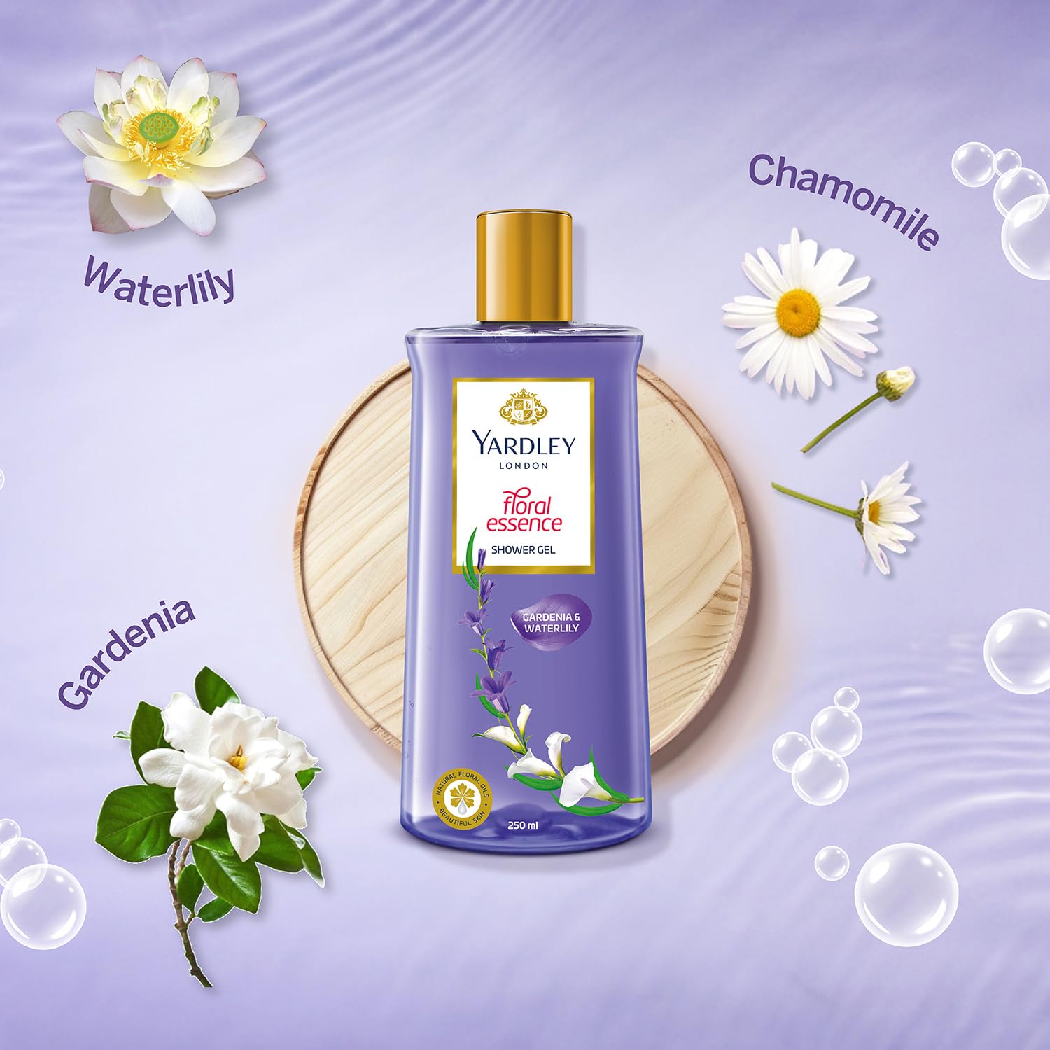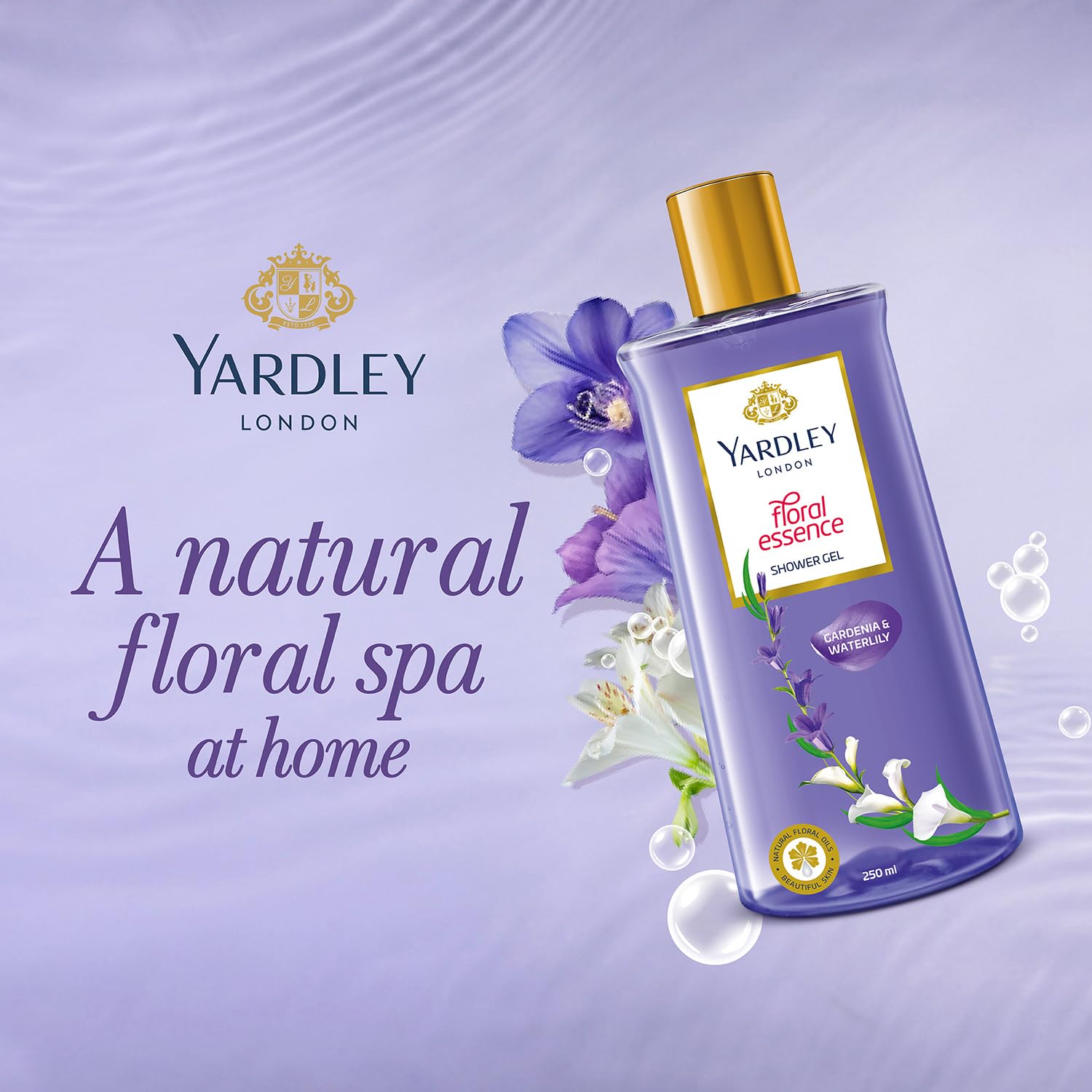 Yardley London| Shower Gel| Floral Essence| With Natural Floral Oils Of Gardenia & Waterlily| No Parabens| No Silicones | 250ml