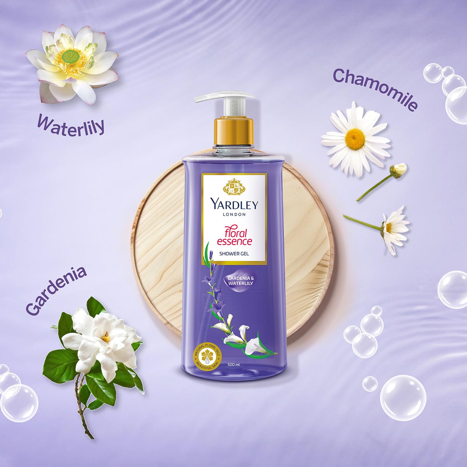 Yardley London| Shower Gel| Floral Essence| With Natural Floral Oils Of Gardenia & Waterlily| No Parabens| No Silicones | 500ml