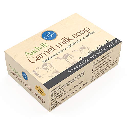 Beautiful gift from the desert camel milk soap is now available in India for the first time by âAadvikâ. Experience the richness and softness of camel milk which gives your skin a moisturizing effect and a healthy glow. Activated charcoal pulls off oil deep dirt and toxins from the skin while leaving it clear and fresh. Blended with the earthy & musky aroma of Patchouli this soap helps fighting against acne and ageing while keeping the body odour away!!