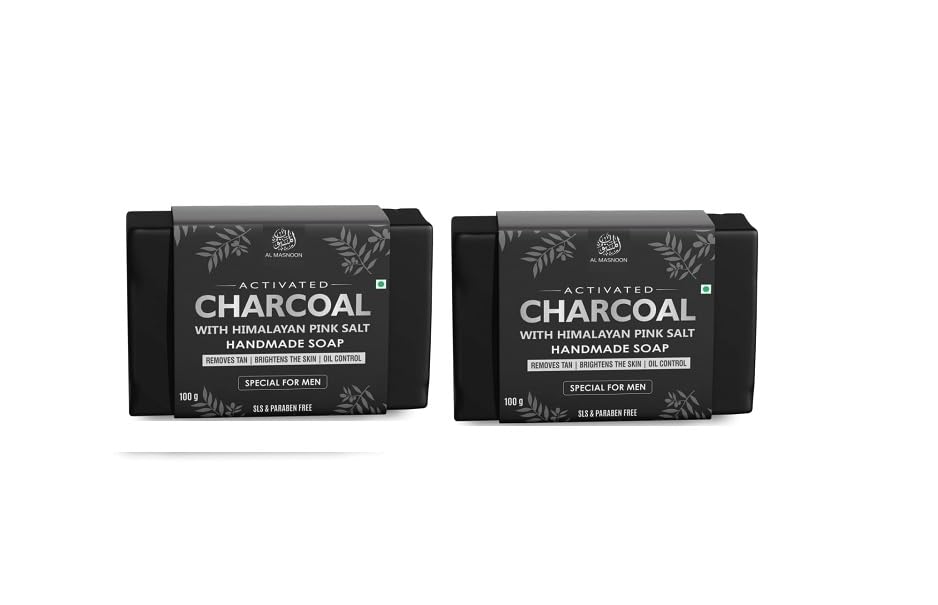 HomeBeautyBodyBath & ShowerSoapsAl Masnoon Charcoal Soap for Men with Himalayan Salt 100g (Pack of 2) - Soap for Oil Control and Tan Removal Infused with Charcoal and Himalayan Salt
