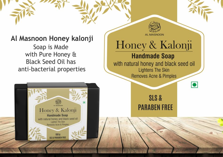 HomeBeautyBodyBath & ShowerSoapsAl Masnoon Honey Kalonji Handmade Soap Made with Pure Honey and Black Seed Oil 100g (Pack of 1) - Natural Soap for All Skin Types Moisturizing and Nourishing