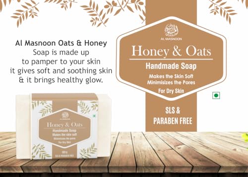 HomeBeautyBodyBath & ShowerSoapsAl Masnoon Honey Oats Handmade Soap Made with Pure Honey & Oats for Dry Skin 100g (Pack of 2) - Nourishing Soap for Hydration and Gentle Exfoliation